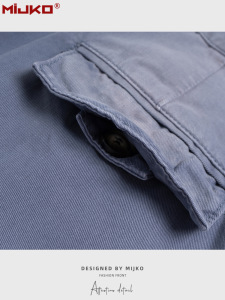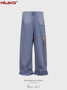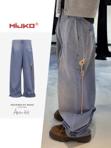 MIJKO男装女做旧皮料锁扣装饰法工裤男女同款直筒百褶休闲长裤潮