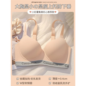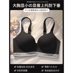 夏季薄款内衣女大胸显小大码无痕美背聚拢软钢圈收副乳防垂文胸