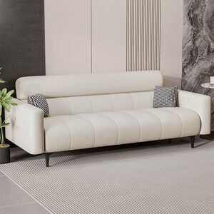 【米白色】免洗猫爪皮丨加固实木框架丨碳钢腿