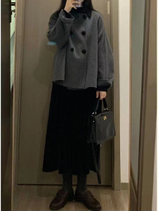 灰色短款呢子大衣女秋冬娃娃领复古加厚小个子韩系赫本风毛呢外套