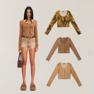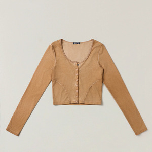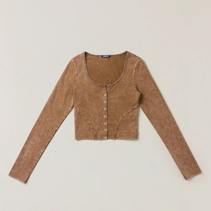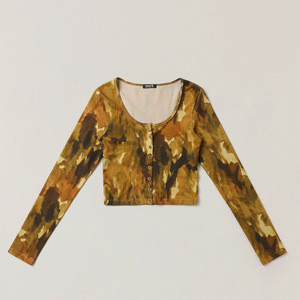 SMFK飓风褪色修身开衫单排扣迷彩褪色长袖T恤上衣