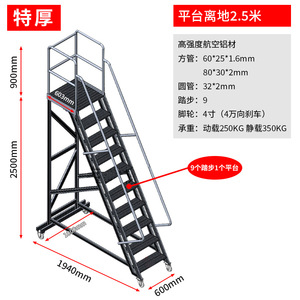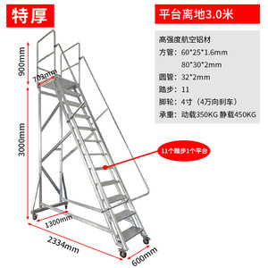 铝合金登高梯移动平台登高车静音刹车取货凳仓库踏步梯子防锈爬梯