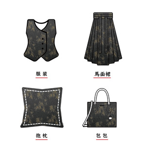 新中式竹叶醋酸双面缎印花面料国风垂顺衬衫连衣裙裤装傣族裙面料