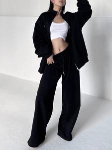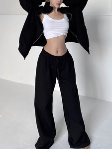 现货阔腿卫裤女款垂感高腰直筒拖地美式重磅辣妹运动宽松显瘦长裤