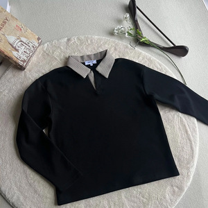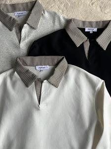 老钱风千鸟格拼接卫衣cleanfit短款复古潮牌长袖抗皱设计感卫衣