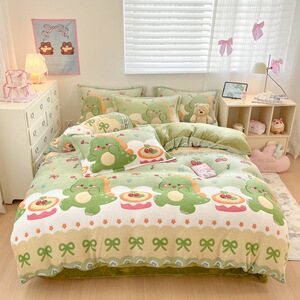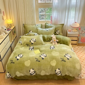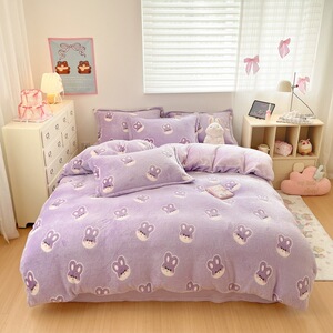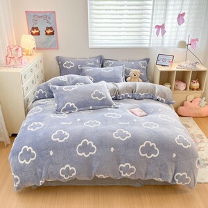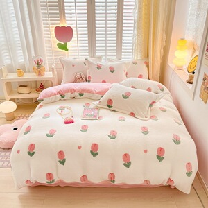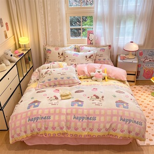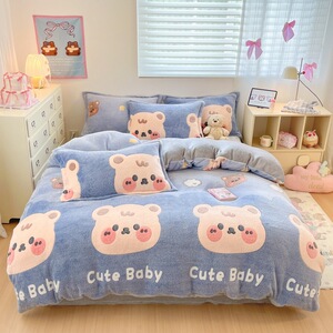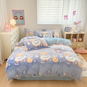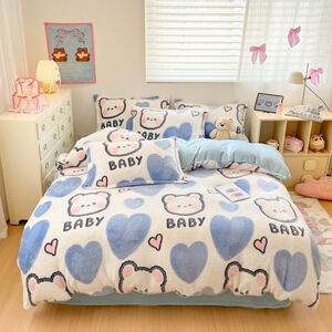 冬季牛奶珊瑚绒四件套立体雪花绒法兰绒加绒双面绒被套印花三件套