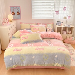 ins彩虹爱语粉【加厚加绒 更暖更柔】