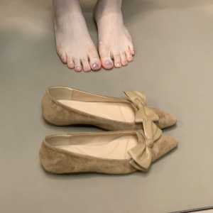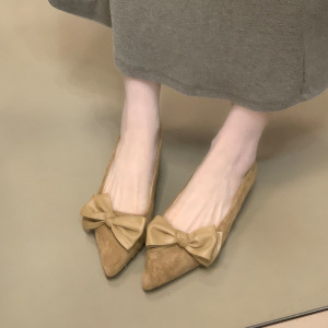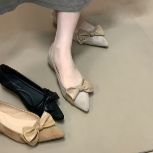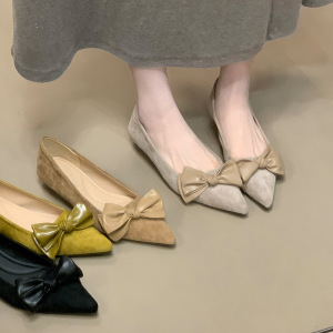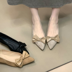 Chengxuan尖头绒面低跟气质单鞋蝴蝶结2025秋季新款百搭通勤女鞋