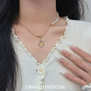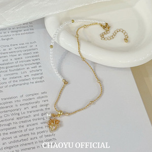 设计感枫叶闪钻吊坠拼接项链小众高级感百搭复古气质独特简约项链