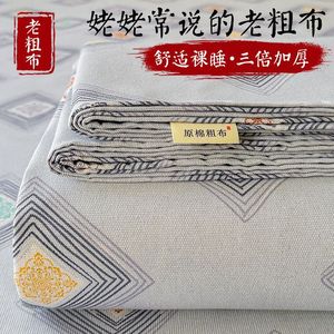 加厚老粗布床单学生宿舍单件原棉被单枕套三件套凉席棉麻可机洗