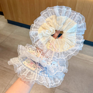 白色波点蕾丝大肠发圈~约19cm