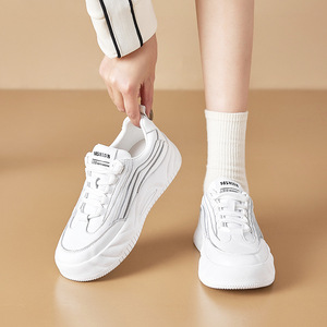 2025秋季真皮小白鞋女韩版系带运动鞋女拼色休闲学生鞋女厚底板鞋