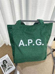 字母印花手提袋大容量学生灯芯绒单肩包笔记本文件收纳包通勤包包