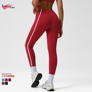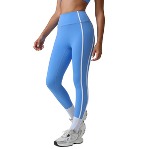 跨境新款高腰运动紧身裤撞色裸感训练瑜伽裤提臀高弹跑步健身长裤