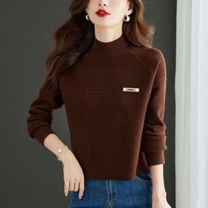 半高领毛衣女短款秋冬2025新款高腰上衣内搭休闲风纯色针织打底衫