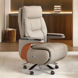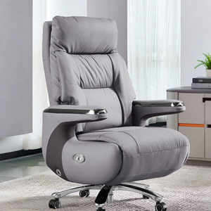 简约现代可躺电动按摩老板椅舒适牛皮办公椅电脑椅办公座椅办公室