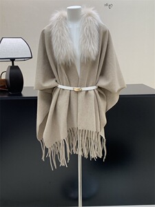 2025新款貉子毛真毛领披肩围脖毛衣 秋冬百搭保暖时尚外套