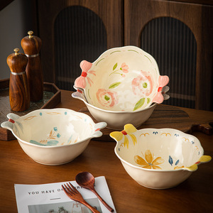 2025新款泡面碗可爱陶瓷碗女生高颜值漂亮餐具酸奶碗双耳碗瓷器