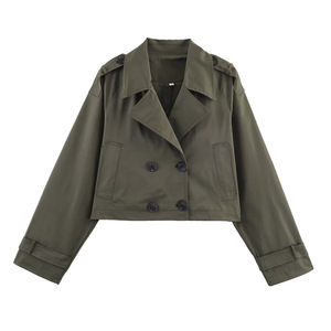 ZA速卖通爆款跨境欧美风女装双襟短款风衣夹克外套女