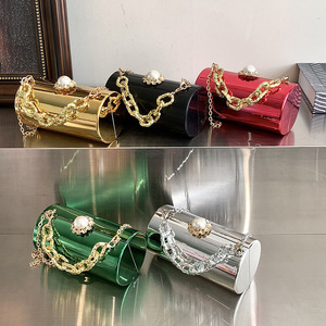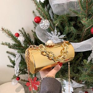2025新款潮流链条手提圆桶单肩斜挎女包一件代发轻奢