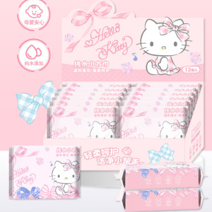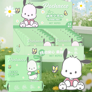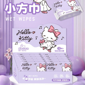 三丽鸥12包整端纯水小方巾 kt猫抽取式湿纸巾便捷携带帕恰狗湿巾