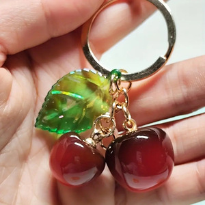 跨境热销樱桃水果吊坠钥匙扣包包挂件树脂车厘子创意汽车钥匙扣