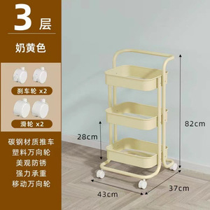 奶黄色【加厚全碳钢】四层扶手款 送两个挂盒