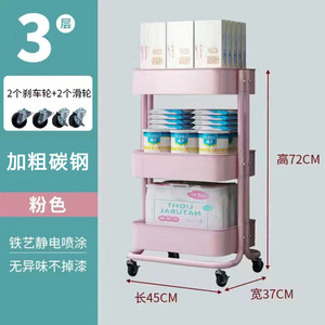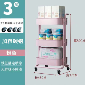 樱桃粉加厚全碳钢】四层扶手款 送两个挂盒