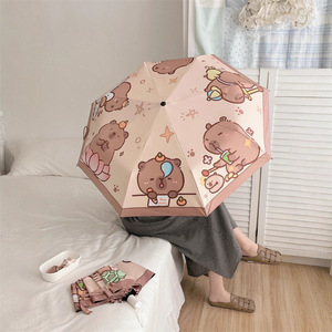 可爱卡皮巴拉雨伞女学生黑胶晴雨两用防晒防紫外线便携折叠遮阳伞