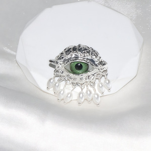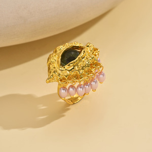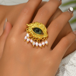 跨境爆款恶魔之眼珍珠流苏戒指女小众高级感开口戒指指环女士饰品