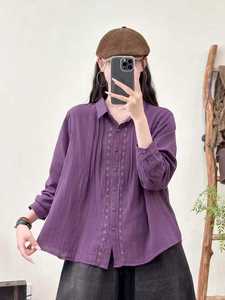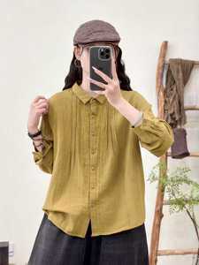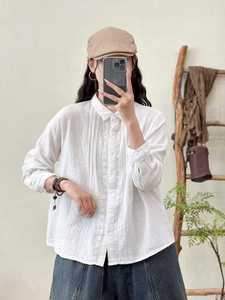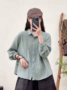 日系森女褶皱双层纱女士开衫长袖衬衫纯色上衣批发