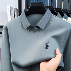 跨境重磅加厚假两件男士卫衣2025秋季新款时尚翻领休闲打底衫男