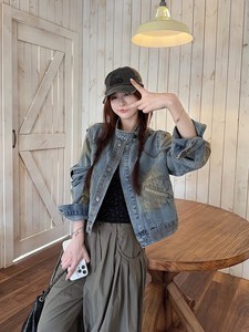 2025秋季新款美式辣妹风设计感高级百搭拉链宽松长袖牛仔短外套女