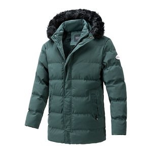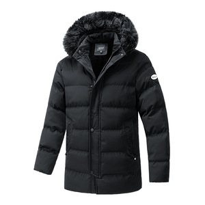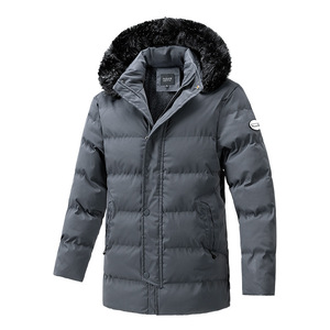 跨境毛领棉衣男士冬季休闲棉服保暖中长款外套潮牌加厚连帽棉袄