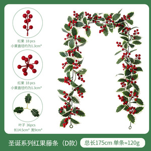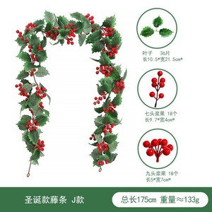 亚马逊 仿真圣诞藤条 仿真绿植圣诞节布置红果派对装饰红浆果软藤