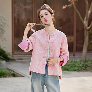 复古新中式刺绣轻奢提花短外套女2025年秋季新款洋气圆领国风上衣