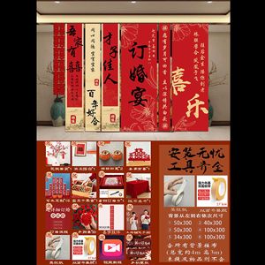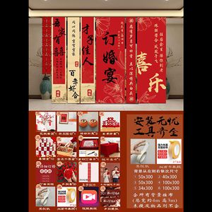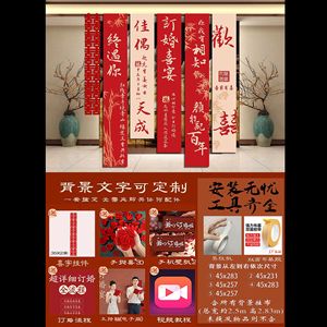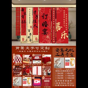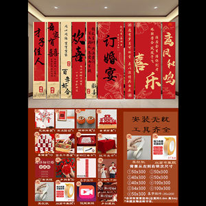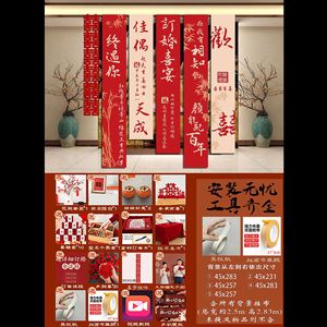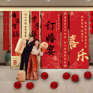 订婚挂布装饰布置背景条幅定作新中式结婚全套用品酒店家里大尺寸
