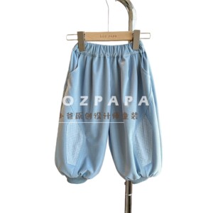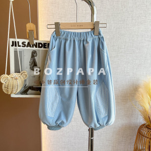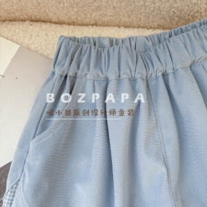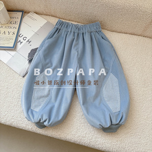 2025秋季男童韩系休闲蓝色裤筒拼布设计长裤儿童宝宝百搭潮酷范