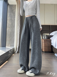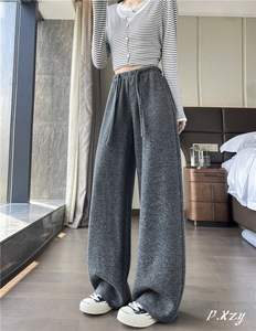 010 女士2025秋季新款卫裤高级感松紧腰垂感阔腿长裤女羊毛休闲裤