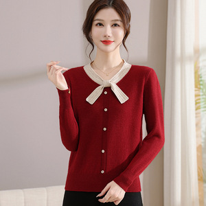 跨境妈妈装春秋冬新款小开衫洋气毛衣中年修身减龄针织衫百塔毛衣
