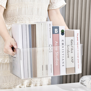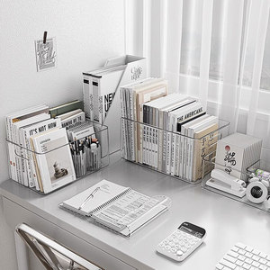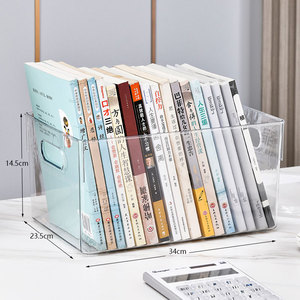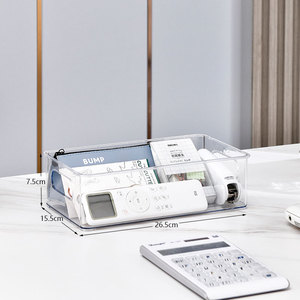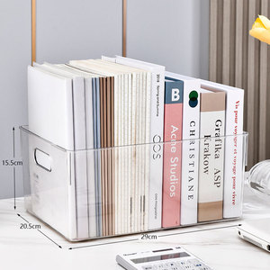 桌面书本收纳盒透明书桌上杂物文具置物盒子办公室宿舍塑料整理筐