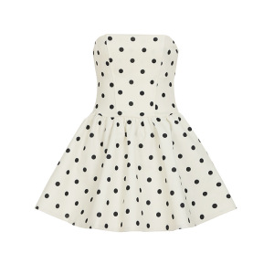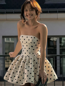 2025法式波点连衣裙夏季新款抹胸收腰A字短裙波点蝴蝶结蓬蓬裙女