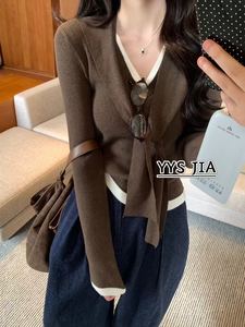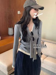 高级感撞色拼接V领针织衫女秋季新款叠穿外搭披肩长袖上衣两件套