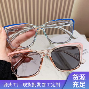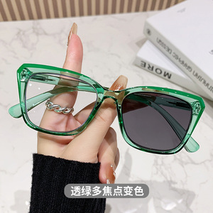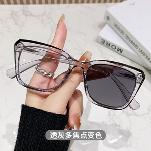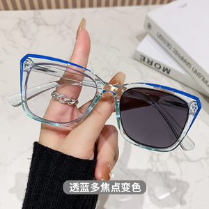欧美多焦点时尚变色防蓝光老花镜老人远近两用老花眼镜男女平光镜