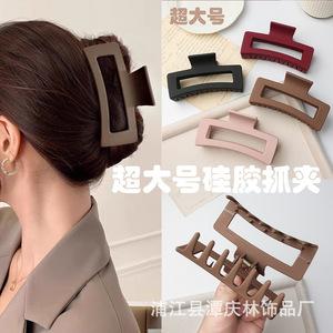 TCB硅胶抓夹高级感盘发后脑勺方形纯色鲨鱼发夹简约橡皮防摔头饰