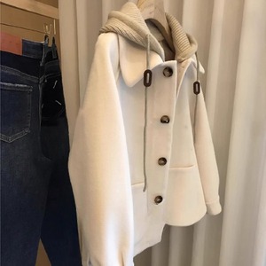 大码女装针织连帽假两件外套上衣胖mm秋冬季新款毛呢外套女开衫