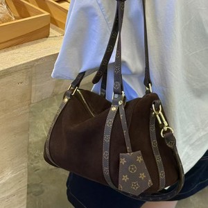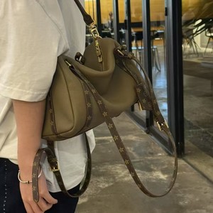 外贸秋冬新款原宿风ins小众波士顿枕头包真皮磨砂Express托特包女