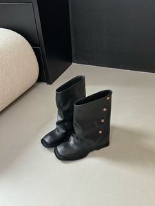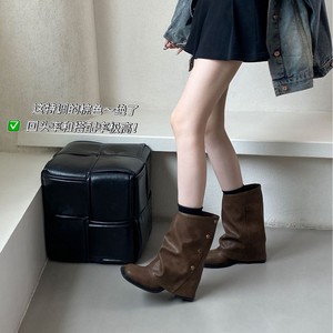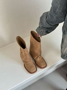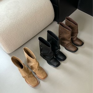时装靴粗跟方头百搭厚底瘦瘦靴时尚马丁靴女靴