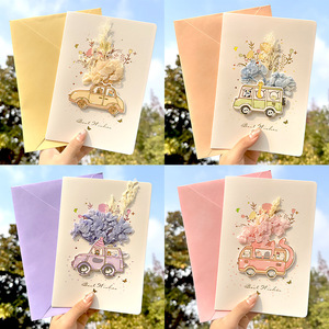 贺卡见花则喜创意干花生日贺卡感立体实物配件小卡片小学生感恩节