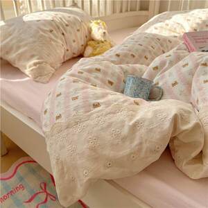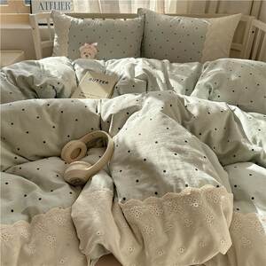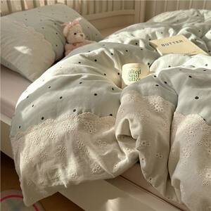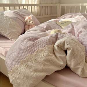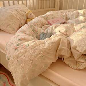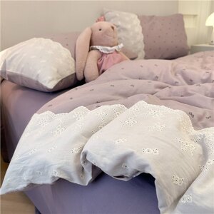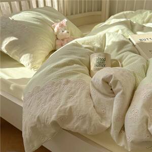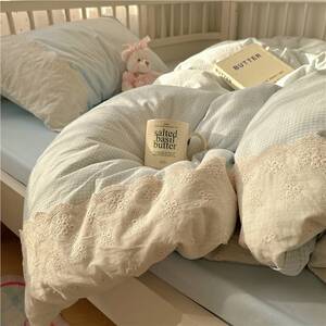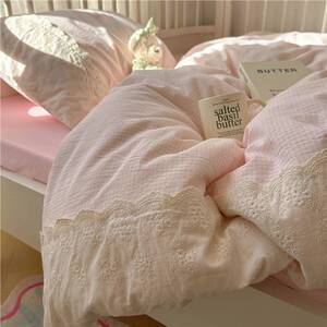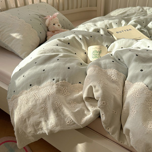 法式蕾丝花边床上用品四件套纯棉全棉被套床单被罩床笠宿舍三件套